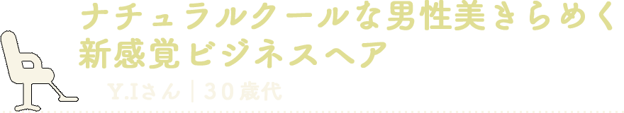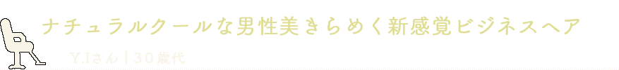 そんなY.Iさんの新しい一面を「ビジネスヘア」という視点から見出してみようとトライしたのが、今回の「ナチュラルクールな男性美きらめく新感覚ビジネスヘア」です。撮影前に描いたイメージが実現し、年齢を問わず多くのビジネスマンにオススメできるヘアデザインとなりました。