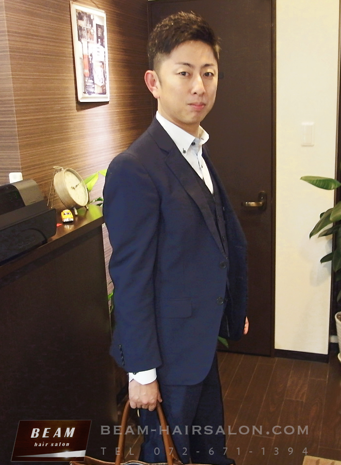 Y.Iさんとの出会いは6年前。前職での得意先が当サロンだったこともあり、それ以来、毎月かかさず摂津市からご来店されています。前回モデルをしていただいたT.Mさん同様、美容室には一度も行ったことのない理容室派! しかも高校・大学とドラマーとしてバンド活動に打ち込みバンドマンっぽくヘアカラーを楽しんでいた時期もあったものの・・・現在はシステム関連会社で働く毎日。